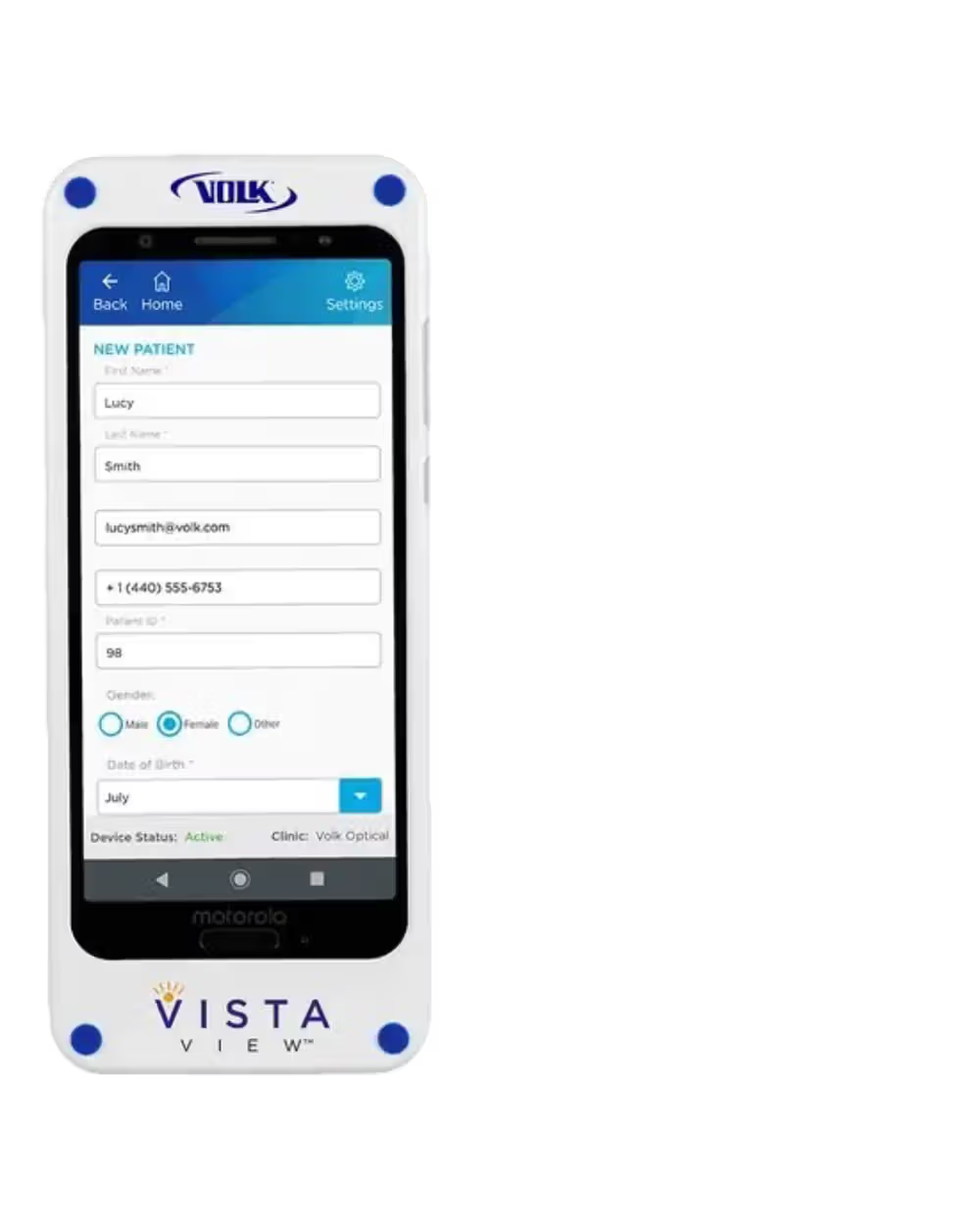 Description: The Volk VistaView VVISTAVIEW revolutionizes retinal imaging by seamlessly integrating Volk optics with the convenience and affordability of smartphone technology. Designed to meet the pressing need for reliable, portable, and connected retinal cameras for eye doctors, the VistaView delivers exceptional imaging capabilities in a compact, user-friendly device. Key Features: VistaView Mobile: Capture sharp, 55˚ retina images effortlessly, powered by Volk optics. The VistaView streamlines patient and data workflow, saving time and resources, making it an ideal solution for both new practices and established clinics seeking portability. Untethered Connectivity: With its lightweight and ergonomic design, the VistaView allows imaging anytime, anywhere. From exam rooms to nursing homes, generate instant reports with patient images and notes on the spot, enhancing patient care and collaboration. User-Friendly Operation: Designed for simplicity, the VistaView requires minimal training, enabling anyone on your team to capture high-quality images quickly. Ideal for busy residents and environments with high staff turnover. Comprehensive Functionality: From patient entry to report generation, the VistaView serves as an all-in-one solution. Maximizing workflow efficiency, it seamlessly integrates into existing processes, enhancing patient throughput and impact. Benefits: Voice Activated Capture: For added convenience, voice-activated capture ensures imaging stability, particularly in challenging environments like ICUs, enabling effortless image capture without manual intervention. Adjustable Illumination Levels: Tailored illumination levels accommodate diverse patient populations, ensuring comfort while maintaining image quality, especially beneficial for photophobic patients. Wide Field of View: With a wide 55˚ field of view, the VistaView delivers uncompromised image quality, capturing comprehensive retinal details in a single capture, further enhanced by dynamic imaging. Instant Report Generation: Effortlessly generate reports with red-free filters, notes, and patient history, facilitating billing, referrals, and patient education. Securely share data for consultations and filing, streamlining clinical operations.