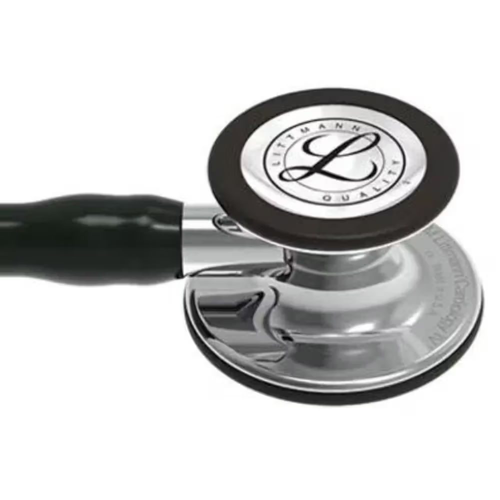 Description The 3M Littmann Cardiology IV Diagnostic Stethoscope with Mirror-Finish Chestpiece and Stem, 27-inch Black Tube (Model 6177) is engineered for healthcare professionals who require exceptional acoustic performance combined with a sleek, professional design. This high-caliber stethoscope is designed to facilitate accurate diagnosis through advanced acoustic technology and a sophisticated appearance. Key Features Mirror-Finish Chestpiece and Stem: The stethoscope features a mirror-finish chestpiece and stem, providing a high-polish, reflective surface that enhances both the durability and the aesthetic appeal of the device. This finish is resistant to scratches and corrosion, ensuring the longevity of the stethoscope. 27-Inch Black Tube: The 27-inch black tube is crafted from flexible, high-quality material designed to enhance comfort and mobility while maintaining acoustic clarity. The tube's construction minimizes noise interference and ensures optimal sound transmission. Dual-Frequency Diaphragms: Equipped with dual-frequency diaphragms, the Cardiology IV Stethoscope allows for accurate auscultation of both high and low-frequency sounds. This feature is crucial for a comprehensive assessment of various heart and lung conditions. Ergonomic Design: The stethoscope is designed with an ergonomic approach, including soft-sealing ear tips that enhance comfort and provide a secure seal to block out ambient noise.